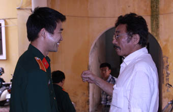 Nhà văn Chu Lai (phải) đang "truyền lửa" cho thế hệ trẻ (Ảnh": XT)